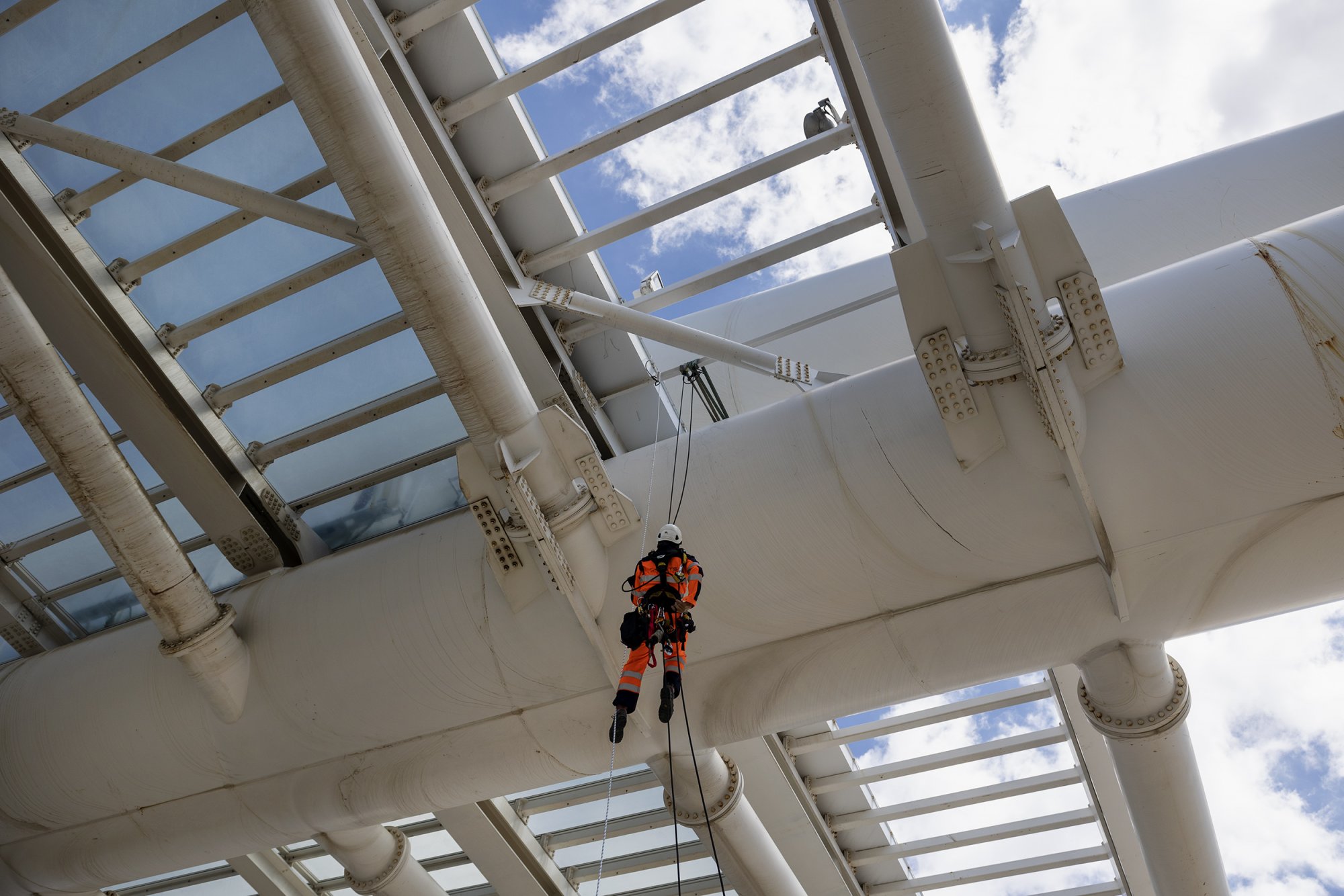 Μια από τις ελάχιστες μεγάλες υποδομές που είχαν κατασκευαστεί ή ανακατασκευαστεί και παρέμειναν λειτουργικές στο πέρασμα του χρόνου, με πολύ σημαντικές διοργανώσεις, ιδίως αθλητικά και μουσικά events. Από χθες το απόγευμα, όμως, στο ΟΑΚΑ έχει σημάνει «κόκκινος συναγερμός» με φόντο τα δύο στέγαστρα του Καλατράβα, κατά το κοινώς λεγόμενον, πάνω από το κυρίως στάδιο και το ποδηλατοδρόμιο.