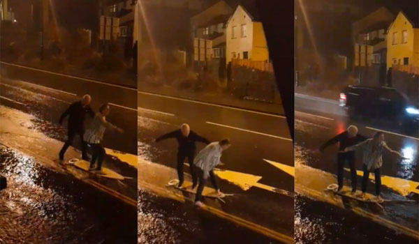 Ζευγάρι κάνει σερφ μέσα στη βροχή με μία σιδερώστρα