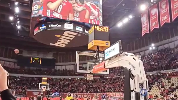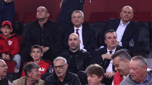 Οι φίλαθλοι του Ολυμπιακού που βρίσκονται στο ΣΕΦ για τον αγώνα κόντρα στη Φενέρμπαχτσε πανηγύρισαν την κατάκτηση του πρωταθλήματος από την ομάδα βόλεϊ ανδρών του συλλόγου.