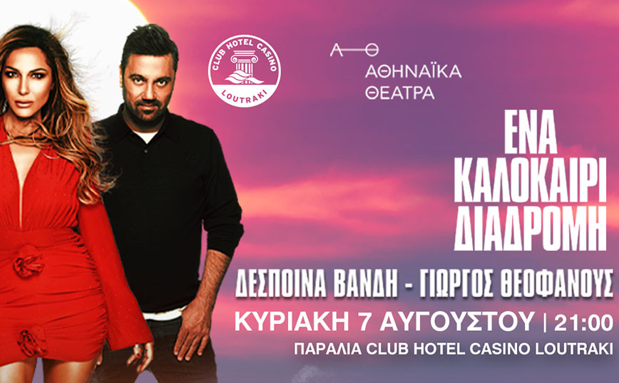 Ανάμεσα στη θάλασσα και τη φωτισμένη πισίνα με θέα τον Κορινθιακό και το χρυσό ηλιοβασίλεμα, η διασκέδασή σας θα κορυφωθεί σε μία αξέχαστη βραδιά. Την Κυριακή 7 Αυγούστου, με την δύση του ήλιου, η εκρηκτική Δ. Βανδή και ο μοναδικός Γ. Θεοφάνους , θα εμφανιστούν στο ειδικά διαμορφωμένο stage της promenade του Club Hotel Casino Loutraki σε ένα ατελείωτο πάρτι που όλοι ονειρεύονται. Χορέψτε ασταμάτητα με τις μελωδίες των αγαπημένων καλλιτεχνών μπροστά στο stage, απολαύστε το ποτό σας σε κάποιο stand, καθίστε εάν θέλετε στις καρέκλες που θα βρίσκονται περιμετρικά ή χαλαρώστε στις άνετες ξαπλώστρες δίπλα στο κύμα. Ζήστε μια απόλυτη καλοκαιρινή εμπειρία στο πιο ειδυλλιακό μέρος