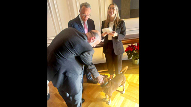 Μαξίμου: Οι "γαλάζιοι" βουλευτές που έπαιξαν με τον διάσημο σκύλο του πρωθυπουργού πριν τη συνάντηση για το αγροτικό (Εικόνες)