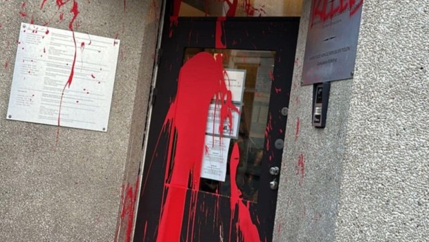 Βρυξέλλες: Κόκκινη μπογιά έριξαν άγνωστοι την είσοδο του προξενείου της Πολωνίας