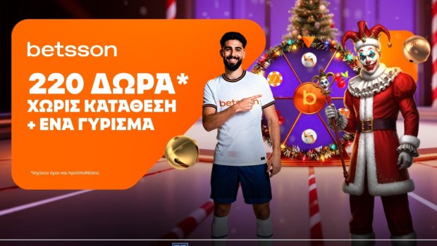 Betsson: Μια ξεχωριστή προσφορά με 220 δώρα* χωρίς κατάθεση + ένα Γύρισμα στον τροχό