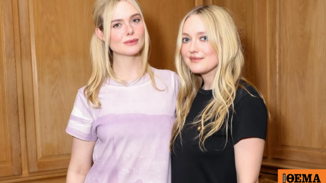 Η Eλ και η Ντακότα Φάνινγκ ποζάρουν με matching Τ-shirt φορέματα