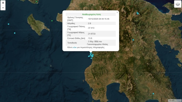 Σεισμός 2,8 ρίχτερ τα ξημερώματα στην Ηλεία (Εικόνα)