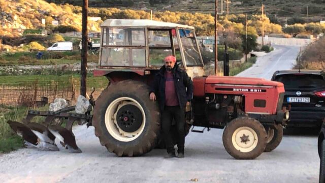 Αμοργός: Ο μοναδικός αγρότης στο νησί έστησε το δικό του μπλόκο - Έκλεισε τον δρόμο με το τρακτέρ του (Εικόνες)
