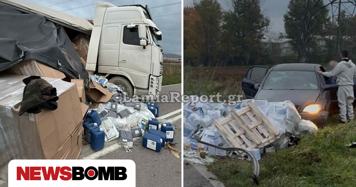 Τροχαίο με εκτροπή νταλίκας πριν την έξοδο της Θήβας - Γέμισε το οδόστρωμα τσιμέντα