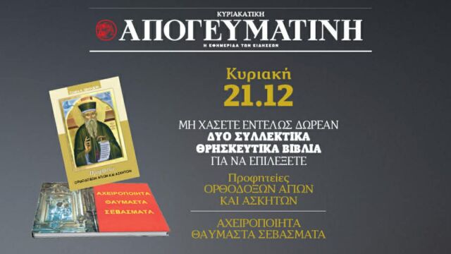"Προφητείες Ορθοδόξων Αγίων και Ασκητών" και "Αχειροποίητα Θαυμαστά Σεβάσματα": Δύο συλλεκτικά θρησκευτικά βιβλία για να επιλέξετε, εντελώς δωρεάν με την Κυριακάτικη Απογευματινή 21/12
