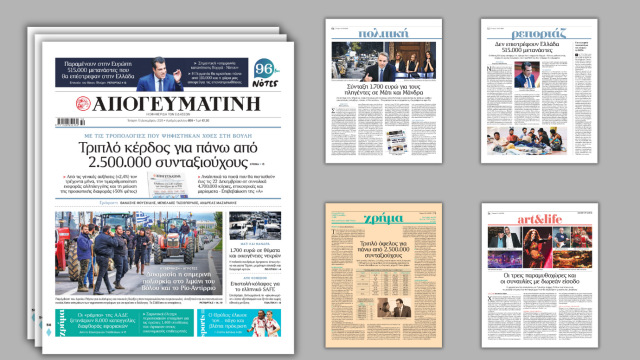 Διαβάστε στην Απογευματινή: Τριπλό κέρδος για πάνω από 2.500.000 συνταξιούχους - Με τις τροπολογίες που ψηφίστηκαν χθες στη Βουλή