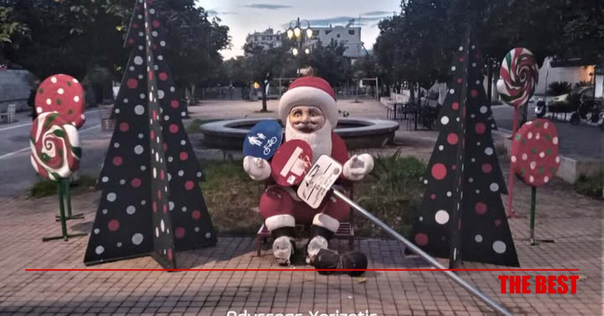 Πάτρα: Η ξεκολλημένη πινακίδα αγκαλιά με τον Άγιο Βασίλη